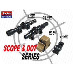 저가형 스코프 & 도트 시리즈가 출시되었습니다. 558탄색 도트 / 오픈도트2 / 모형스코프 / L스코프 총 4종입니다.