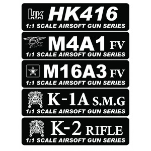 스티커는 5가지(416D, M4, M16, K1, K2모델)의 스티커가 포함되어 있습니다.